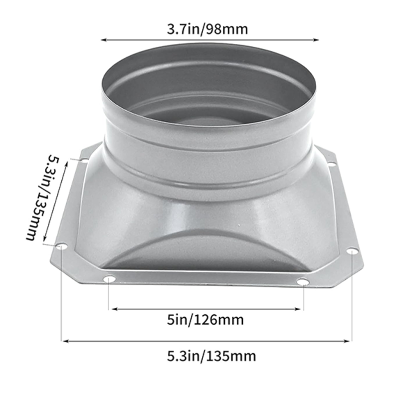 Position: Home > 4 Inch Metal Square Pipe Connector to Round Interface Air Duct Connector Flange for Air Conditioning Systems