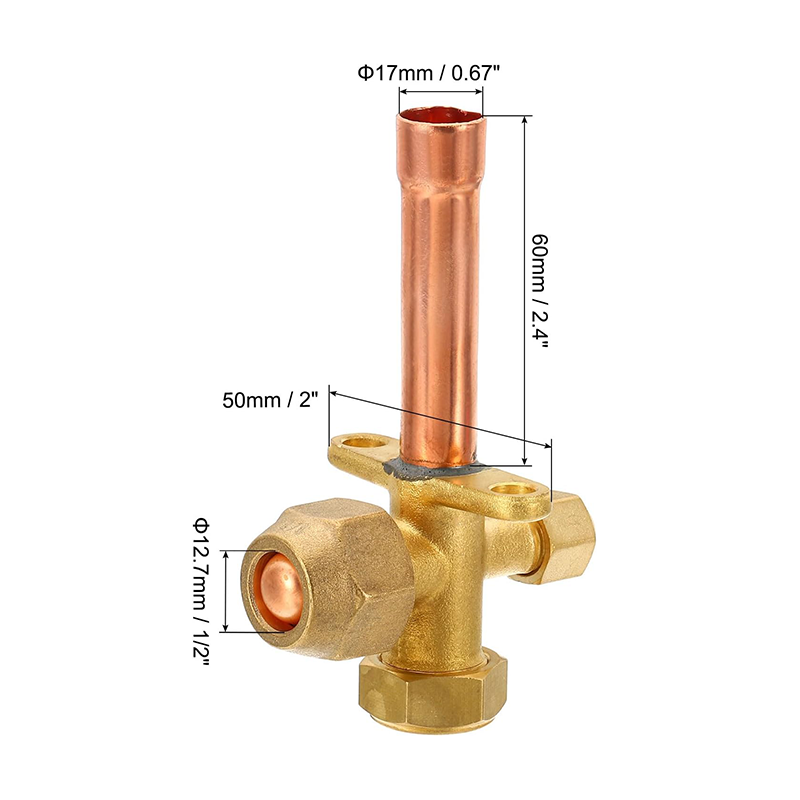 Position: Home > 1/2" OD Copper Tube Size Straight 3 Way Angle Air Conditioner Stop Valve Fitting for Split AC Refrigeration