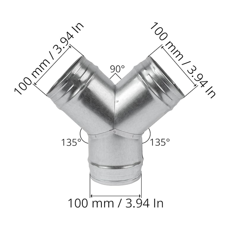 Position: Home > 4'' Inch Y Shape Joint Galvanized 3 Way Duct Hose Connector for Exhaust Fan Dryer Vent Hose